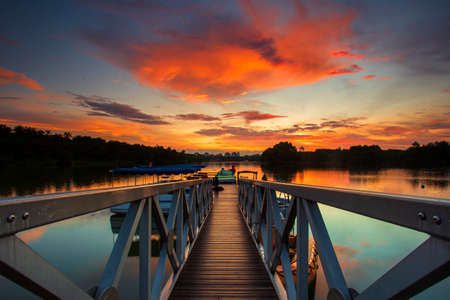A pier at Putrajaya Lake, Malaysia at sunset
