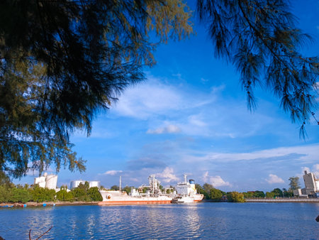 Beautiful view of the sea and the ship in the park.