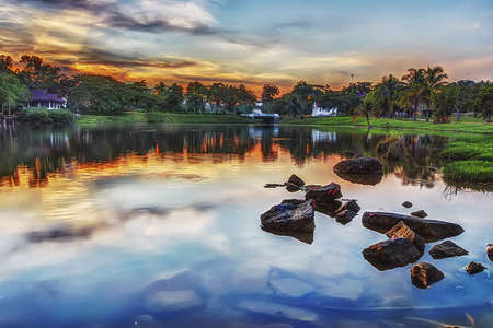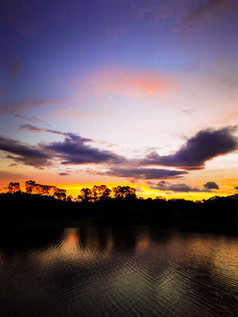 Beautiful sunset at Wetland Park, Putrajaya Malaysia.Soft Focus,Blur due to Long Exposure.Visible Noise due to High ISO.