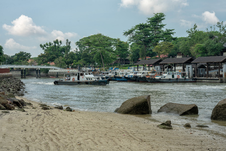 Sunny day showing tourboats to Palua Ubin at Changi harbor from Changi Beach Park