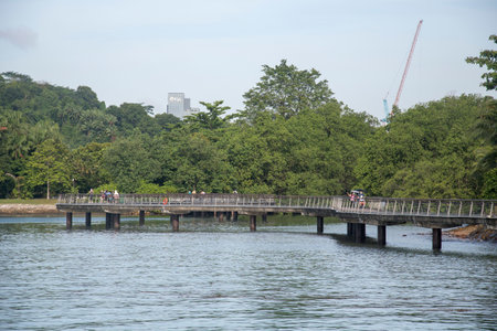 Singapore - July 15, 2018: Pungol Park walway to Coney Island