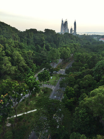 Singapore, April, 2019. View of the city seen from Singapore Cable Car.