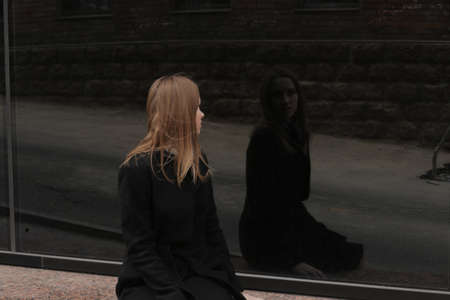 Emotional disorder woman blur mirror reflection