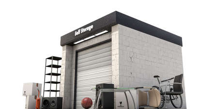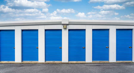 View of self storage warehouse, process of keeping and storing the goods and items in a storage units, self-storage building, lock and key concept