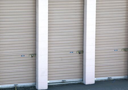 Self storage facility, metal doors with locks. Moving, storage concept.