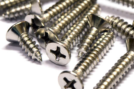 od steel tapping screws, metal screw, iron screw, chrome screw, screws as a background, wood screw