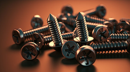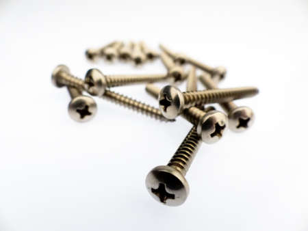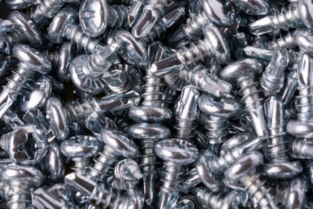 Tapping screws made of steel, metal screw, iron screw, screws as a background