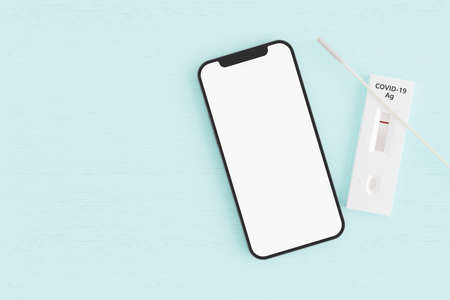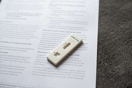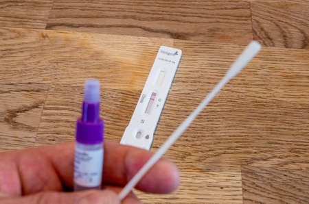 Rapid Antigen Test kit with negative result swab COVID-19 testing.