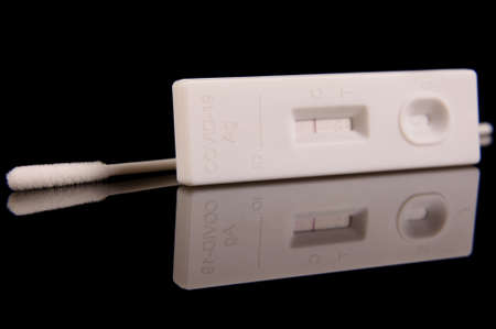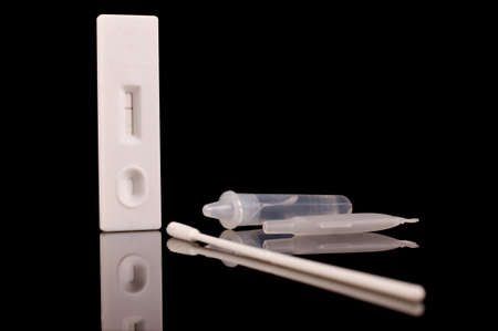 Rapid antigen test kit for COVID-19 corona virus detection and pandemic control isolated on the black reflective background
