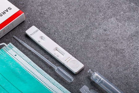 Rapid Antigen Test kit. Medical device for covid-19 antigen self test. Coronavirus infection detection kit.
