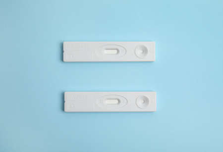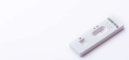 antigen test kit for checking virus with negative result on white baantigen test kit for checking virus on blue fabric background