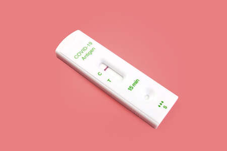 Rapid Antigen Covid Test Showing Negative Result Isolated on a Pink Backgound
