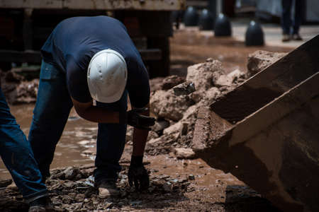 Mixing tile adhesive or cement with a power drill for repair works on construction site. Waiting to be mixed with cement. Construction workers or technicians is mixing the cement in the bucket.