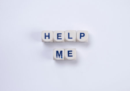 text help me from cubes with letters on a white background