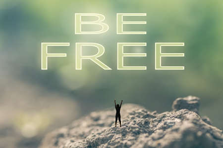 Concept of with a person stand in the outdoor and looking up the text over the sky in nature background.