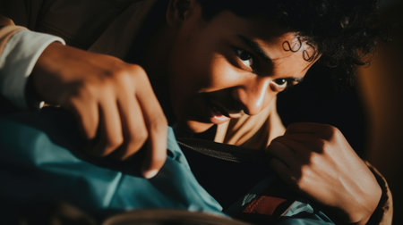How do you wake from a nightmare when you arent asleep. Shot of hands grabbing a young mans face against a dark background.