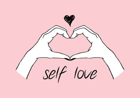 Vector trendy illustration of gesture - heart made with hands in modern minimal and tattoo style. Design template for logo, print, emblem or branding. Self love concept.