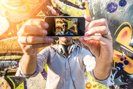 Man making the selfie with his cell phone