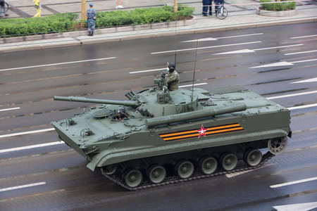 Moscow, Russia - 18.06.2020 Victory Day Parade rehearsal. Russian army BMP-3 infantry fighting vehicle on Sadovaya Street (Moscow)