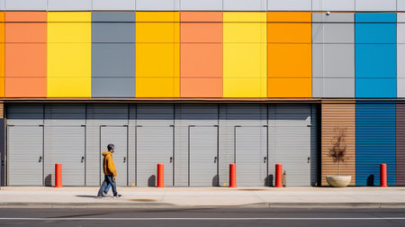 a person walking past a building with a colorful facade