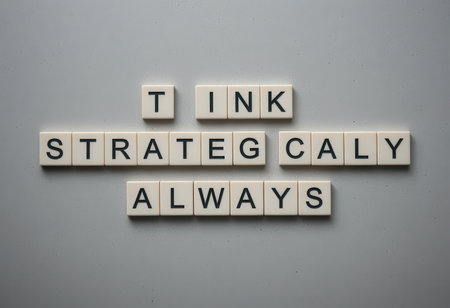 Motivational arrangement of letters spelling Think Strategically Always on a light background, encouraging professionalism, clarity, and creative thinking in various contexts.