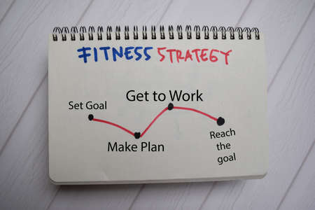 Fitness Strategy write on a book and keyword isolated on Office Desk.