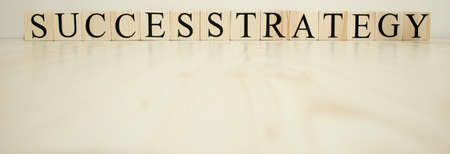 Strategy and strategy text on wooden cubes. Vertical bars around. Concept.