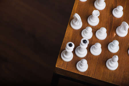 white chess on the wooden table background