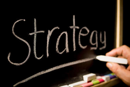 Strategy concept, inscription on the background of a chalkboard