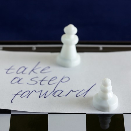 wood text strategy with black and white chess around