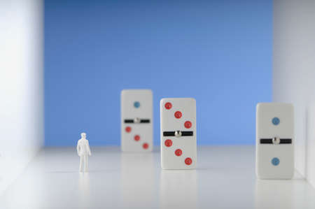 Figurine standing in front of domino.