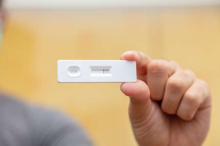 Own hand showing Covid-19 negative test result with SARS CoV-2 Rapid antigen test kit (ATK),Coronavirus infectious protective concept