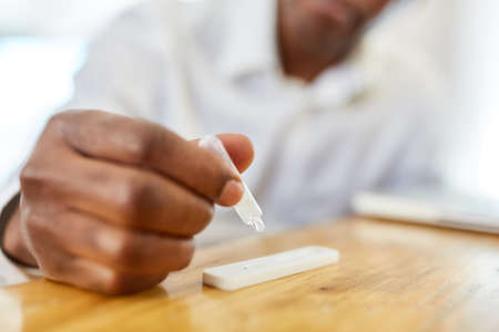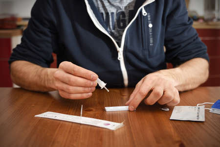 Caucasian man makes a rapid home test device