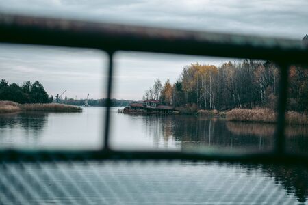 Abandoned bay on the lake in Pripyat in Chernobyl