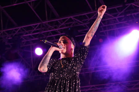 FARO, PORTUGAL: 6th SEPTEMBER, 2019 - Rap singer, Biya, performs on Festival F, a big festival on the city of Faro, Portugal.