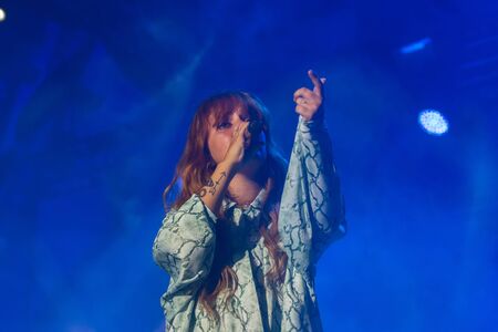 FARO, PORTUGAL: 7th SEPTEMBER, 2019 - Pop Rock band, Carolina Deslandes, performs on Festival F, a big festival on the city of Faro, Portugal.