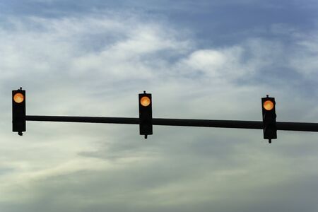 A close-up of a traffic light with an overcast sky in the background, symbolizing the predictability of traffic patterns