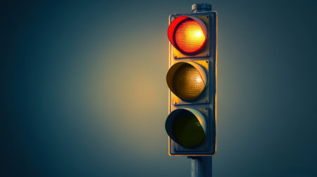 Isolated red traffic signal glowing in a dark void, cinematic lighting, perfect focus on the illuminated red circle