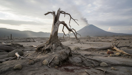 Ash cloud rising at Semeru Volcano Mountain, East Java, Indonesia