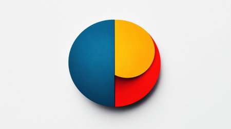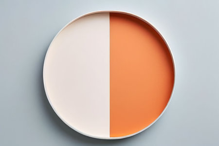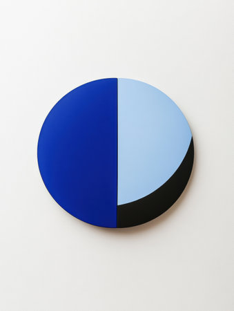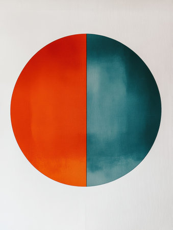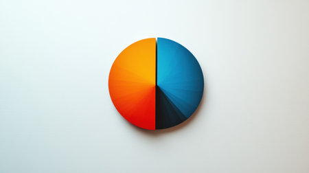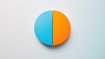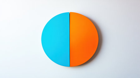 Vibrant circular shape features a bold blue half and a contrasting orange half, creating a striking visual effect on a light backdrop.