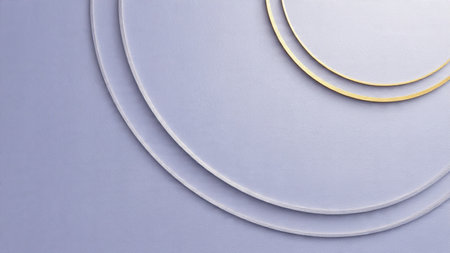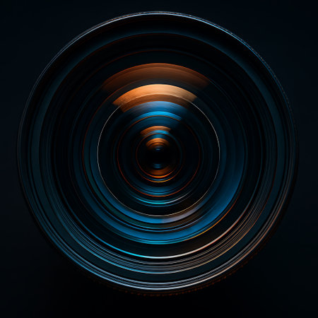 Abstract concentric circles are arranged with blue and orange reflections on dark gradient backdrop.