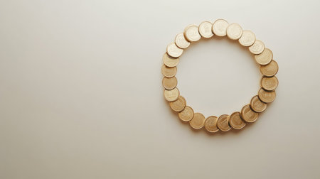 A circular arrangement of gold coins placed on a neutral background, symbolizing financial growth and investment opportunities in a modern context.