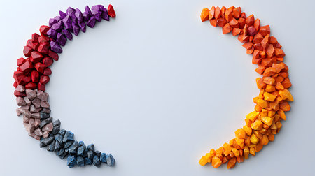 Vibrant and Colorful Circular Segments Creating a Dynamic Rainbow Palette on a Neutral Background
