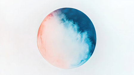 This artwork showcases a circular design with a smooth gradient of blue and coral. Soft, cloud-like textures enhance the calming effect, inviting contemplation and peace.