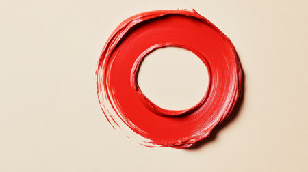 Lipstick stroke forming a circle, bright coral tone generative ai
