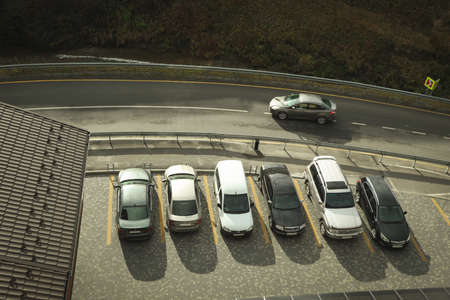 Odessa, Ukraine - 20 january 2022: Hotel parking with cars in ski resort