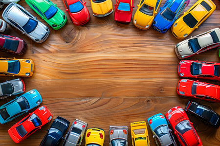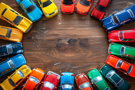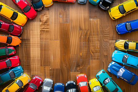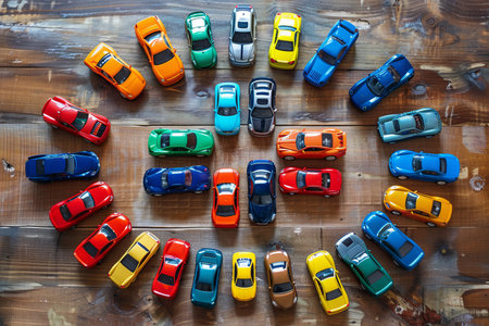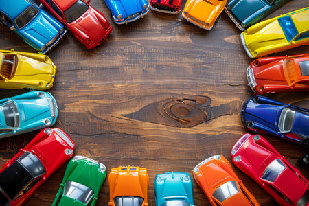 Colorful toy car collection circle in childrens playroom for creative play and learning
