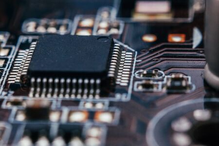 Circuit board repair. Electronic hardware modern technology. Motherboard digital personal computer chip. Tech science background. Integrated communication processor. Information engineering component.