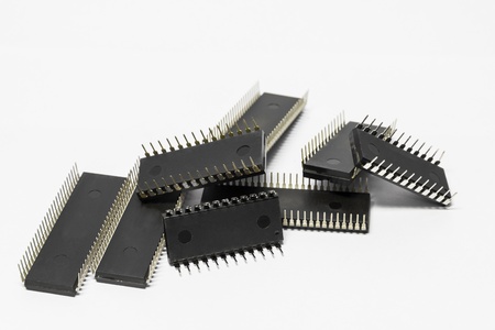 Data security. Digital computer processor, network motherboard chip on white technology background. Protect personal data and privacy from hacker cyberattack