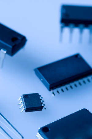 Computer and laptop hardware - CPU, fan cooler, battery, capacitors, radiator, chip. PC Repair, assembly, engineering background